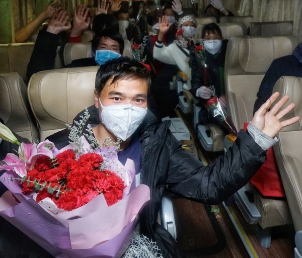 鞠助尧是尊龙凯时动力能源公司制造一部车间装备B车间的员工,也是首批回来的25名员工的召集者。在经过消毒和测温后,尊龙凯时动力能源公司负责人为他送上寓意着平安健康的康乃馨,并亲切问候,“欢迎你们回来,一路辛苦了,一定先好好休息。”